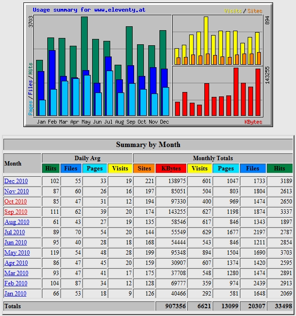 Besuche täglich; ca. 13100 Seiten und 33500