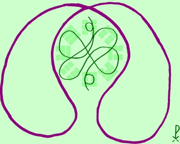 Die Schleife (der Form) endet (im Kreuzungspunkt)